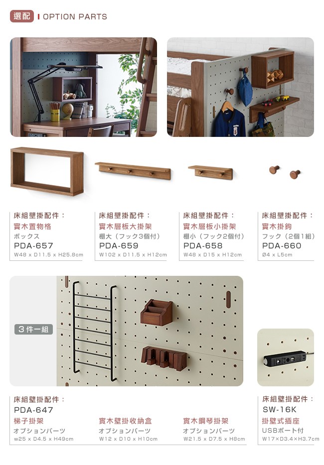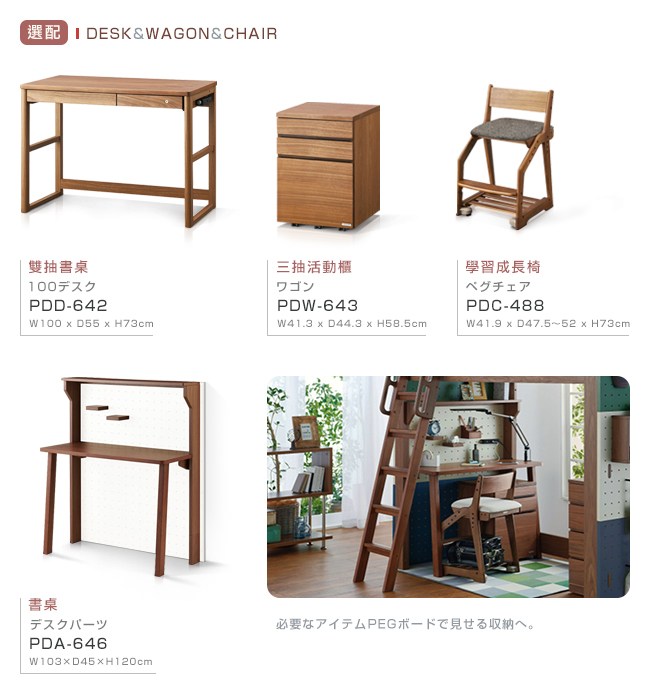 實木溫潤、沈穩的質感,無窮創意的組合變化。書房套裝組的佈置,放入每個您用心挑選的配件,完美空間的演出。從高床、中床組,以及雙層床組,另有專屬配件,方便擺設小物品,與吊掛帽子、外套、書包。小小的空間,卻是沒有侷限的收納。搭配書桌、兒童成長椅、活動櫃、還有置物櫃,擺放書籍、飾品、衣物,一應俱全的小書房,形成獨一無二的風格。好的傢俱、好的習慣、讓孩子感受到與眾不同的生活。