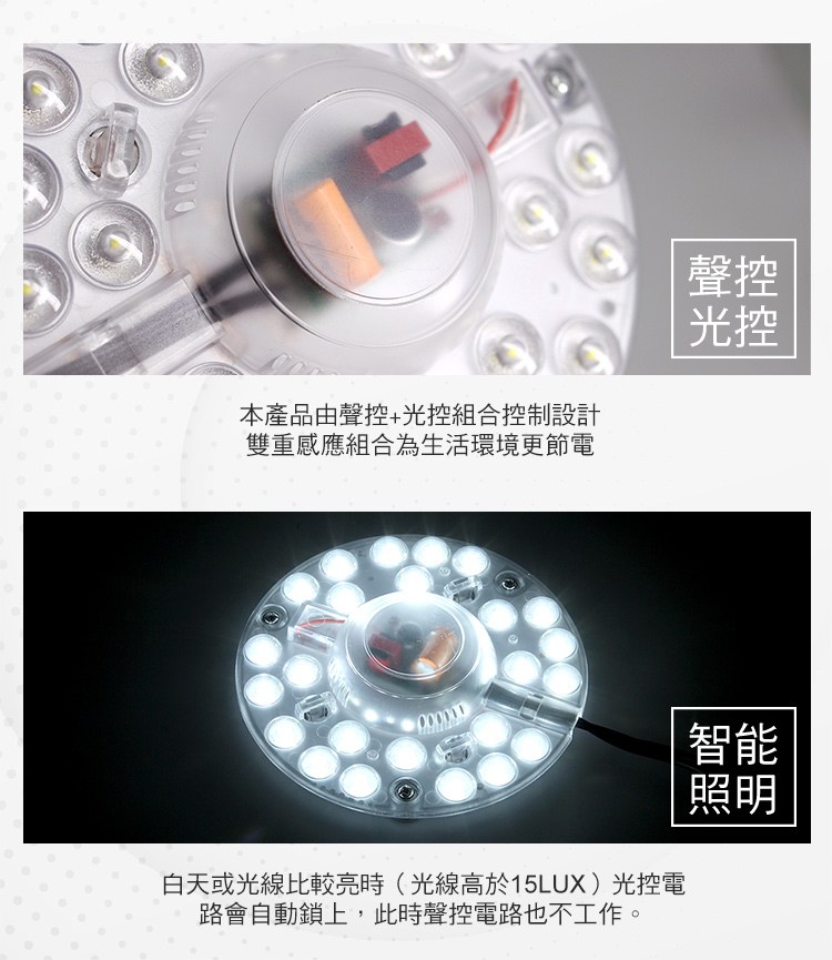 ◆本產品由聲控+光控組合控制設計,雙重感應組合為生活環境更節電。