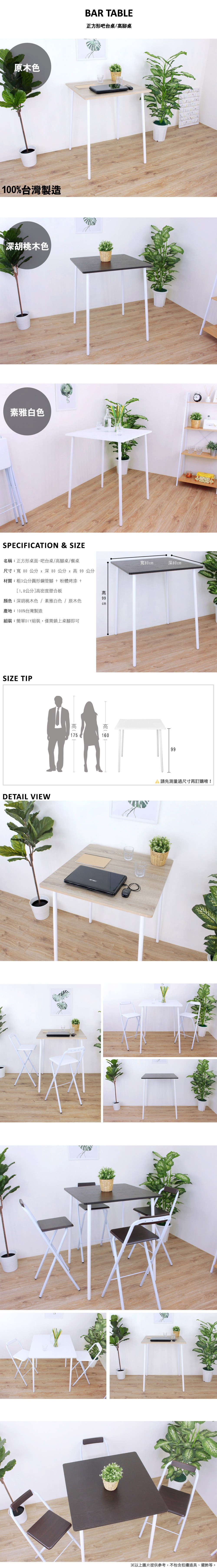 ◆商品品名:寬80x深80x高99/公分-方形吧台桌/高腳桌/餐桌/洽談桌