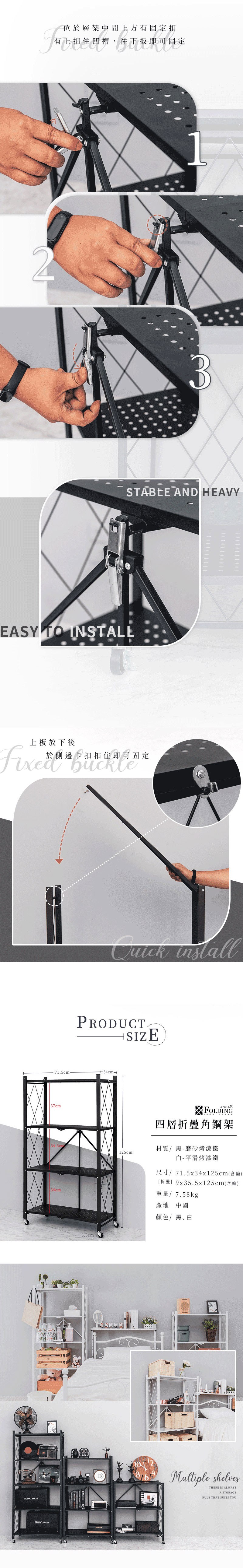 DAYNEEDS 日需百備~四層免安裝折疊角鋼貨架(1入) 款式可選