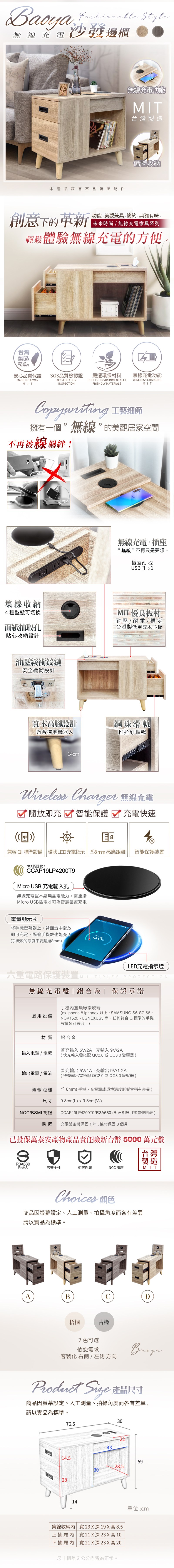 IHouse-寶雅 無線充電沙發邊櫃/茶几/多用櫃/功能櫃梧桐_左開口B