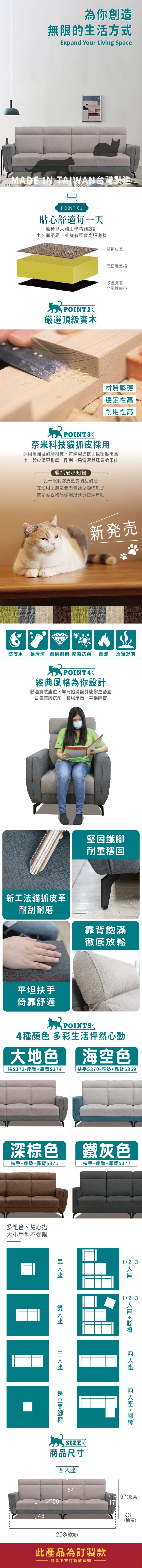 IHouse-露西 奧地利涼感布+耐磨貓抓皮 獨立筒沙發 4人座