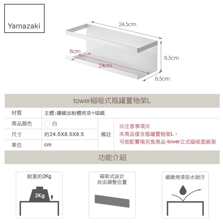※注意事項※ 本商品僅含瓶罐置物架L,可搭配賣場另售商品-"" tower立式磁吸面板架 ""