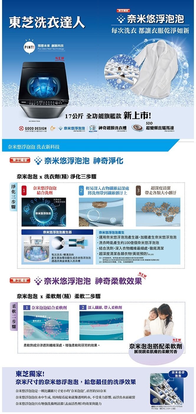 TOSHIBA東芝 AW-DMUH17WAG 17公斤奈米泡泡洗衣機