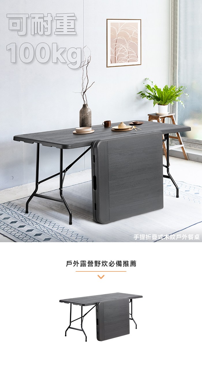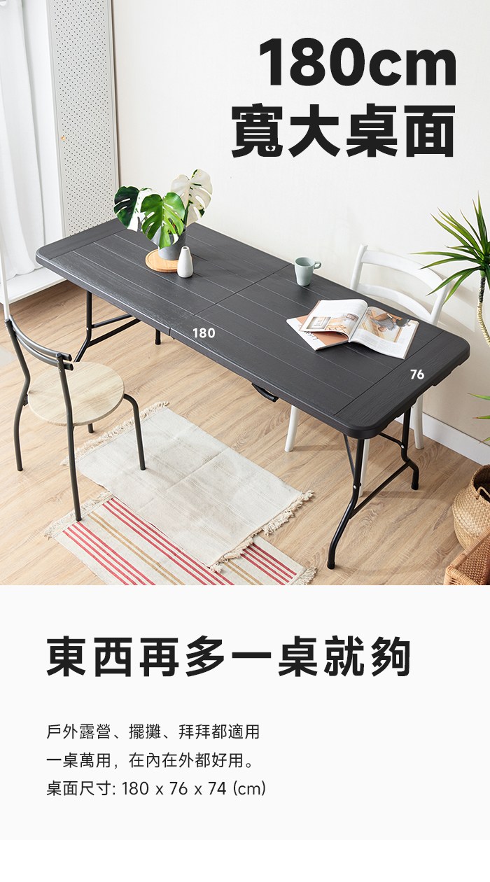 【RICHOME】勞倫金可延伸餐桌黑岩色