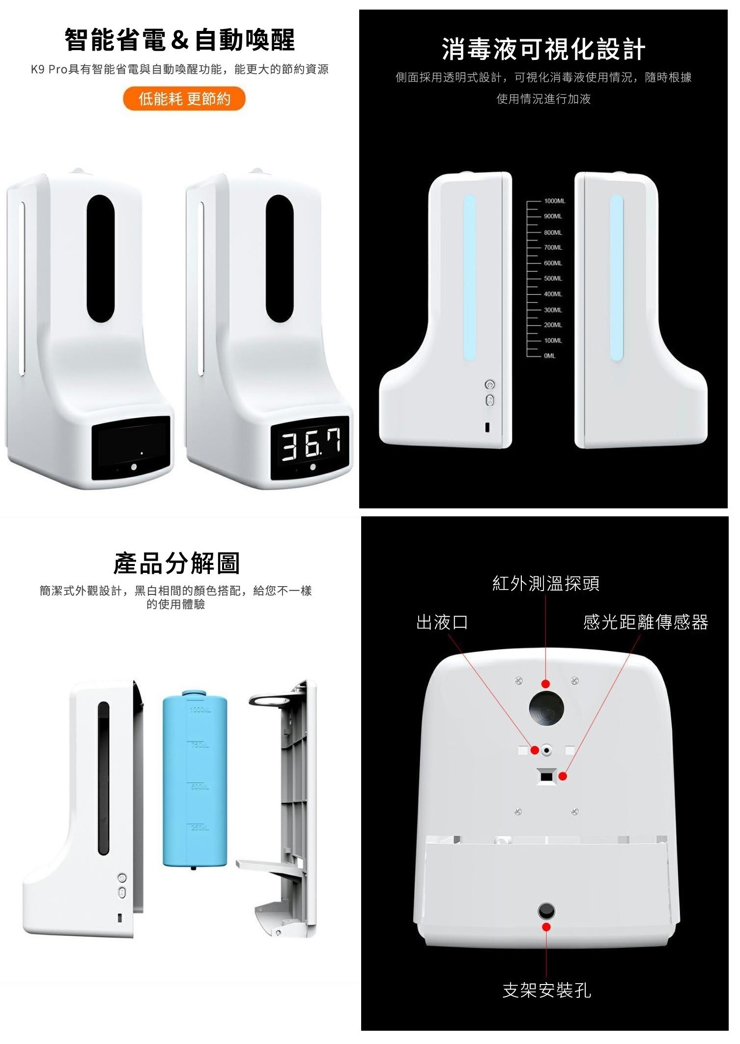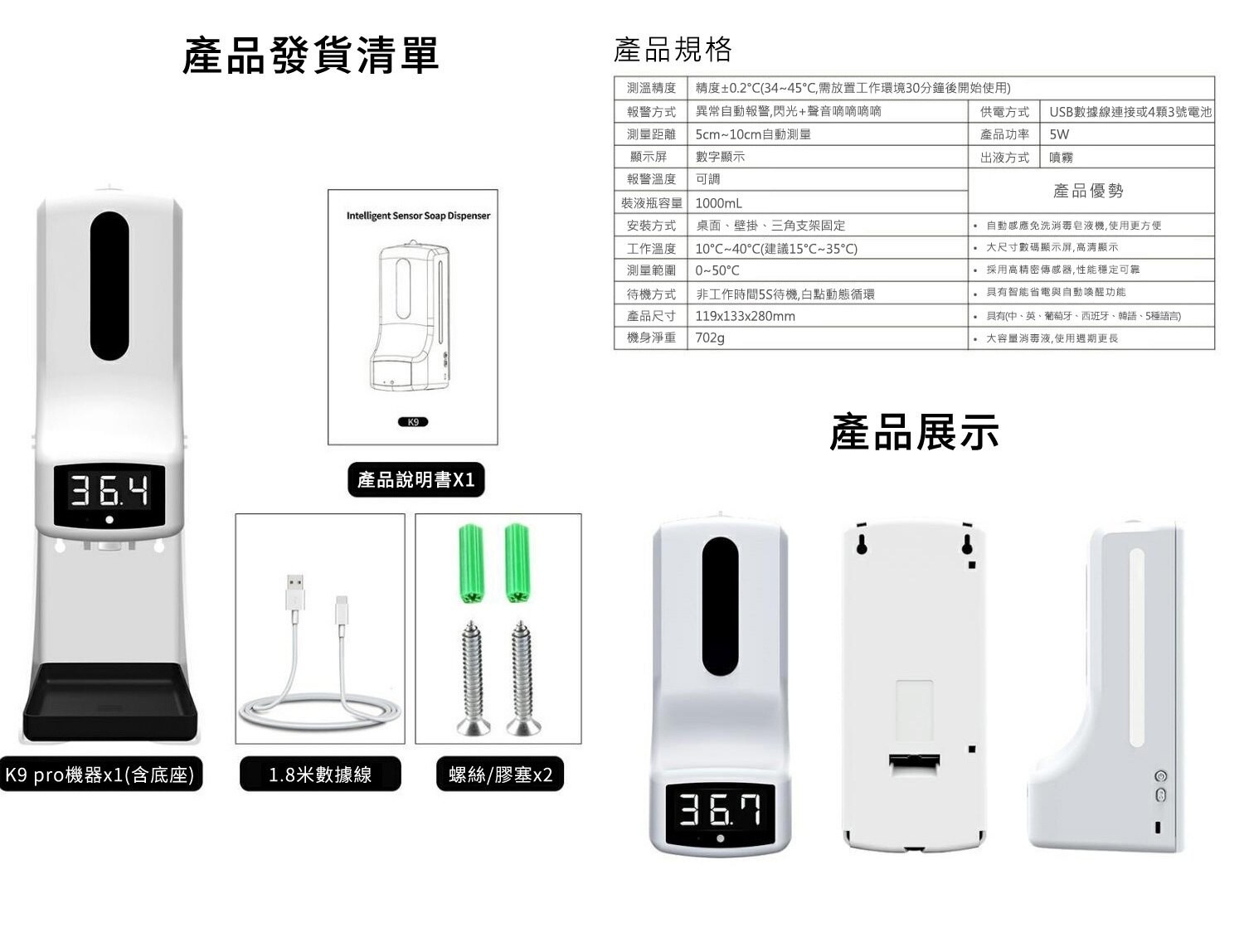【K9 pro】酒精噴霧機 自動消毒機 皂液噴霧器(自動感應酒精洗手測溫一體機)