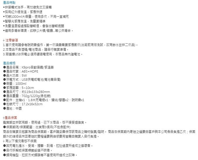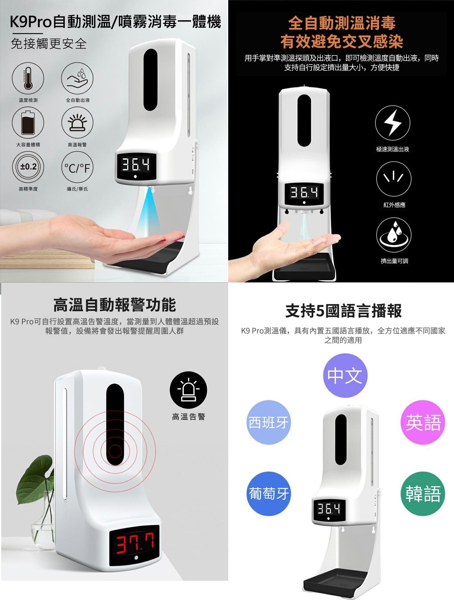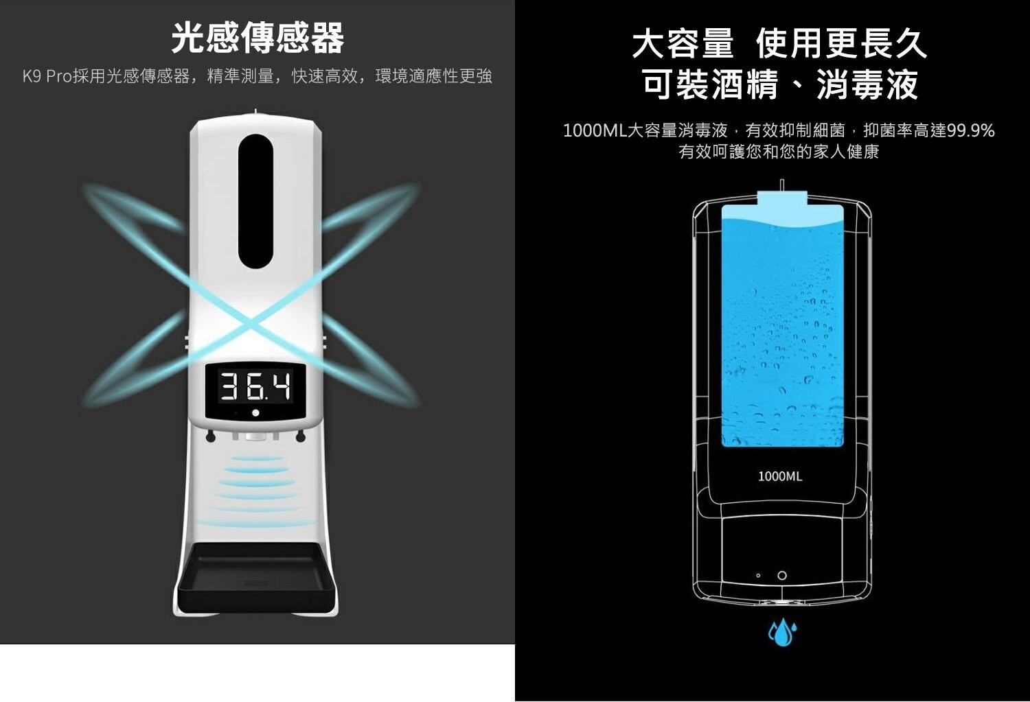 【K9 pro】酒精噴霧機 自動消毒機 (自動感應酒精洗手測溫一體機)
