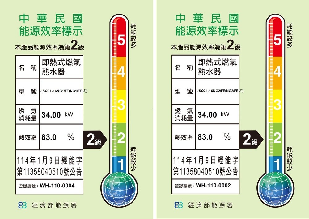 • 富氧藍焰高效燃燒,符合經濟部能源局2級能效