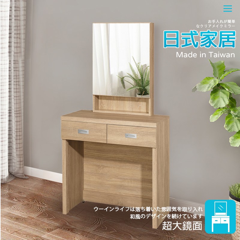 【KIKY】愛麗兒二抽開門鏡化妝桌椅組(化妝台+化妝椅)梧桐色