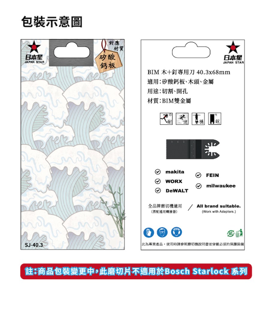 JAPAN STAR 日本星 專業型磨切機鋸片 Metal BIM SJ-44T 適用於矽酸鈣板 1個