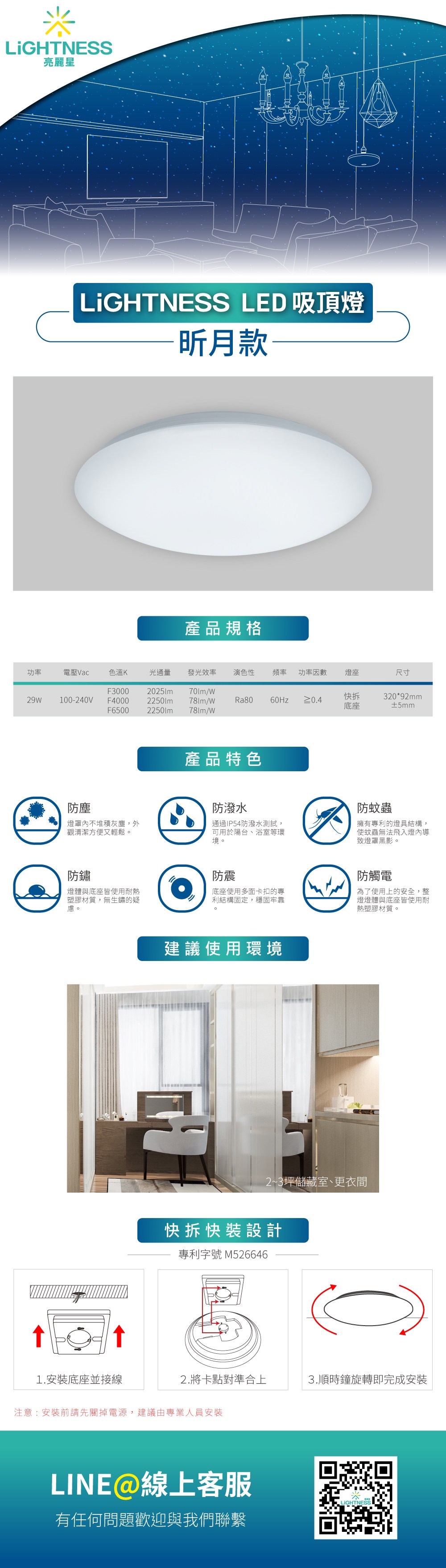 LiGHTNESS LED吸頂燈 昕月 29W 自然光 IP54