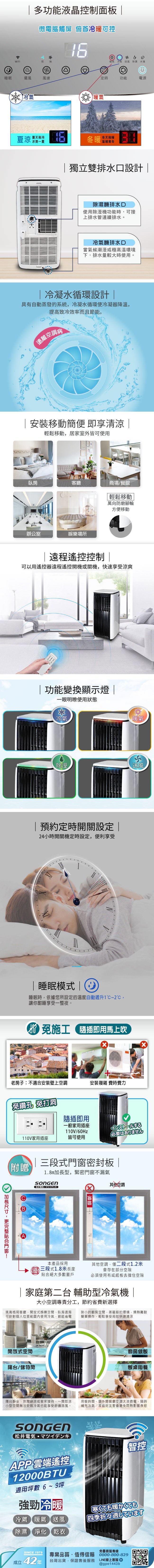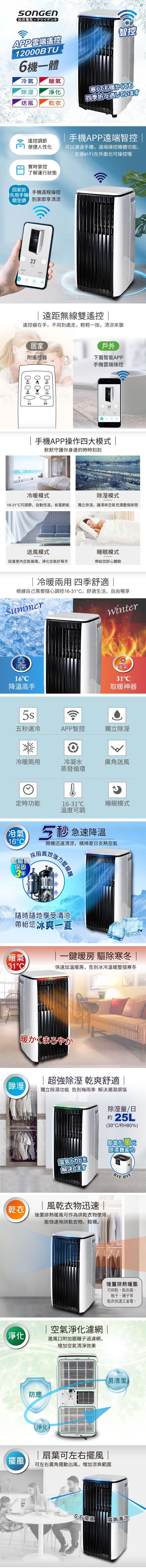 【SONGEN松井】APP遠端操控除溼淨化冷暖型移動式空調