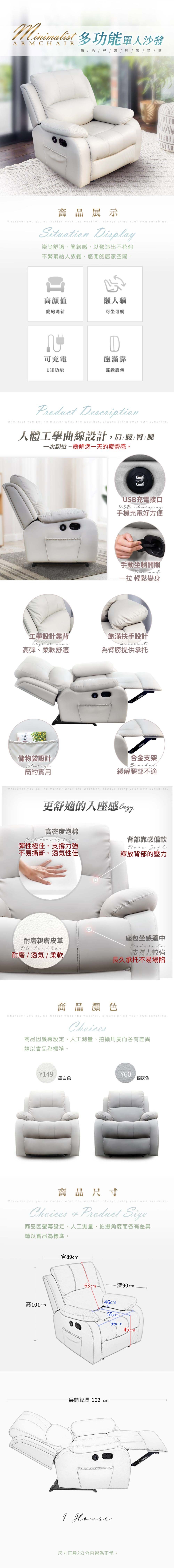 IDEA-凱爾多功能真皮電動沙發躺椅/起身椅