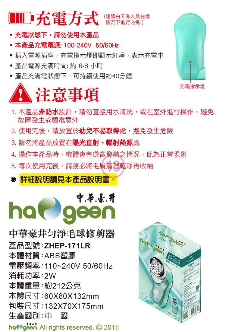 中華豪井 毛球修剪器 ZHEP-171LR