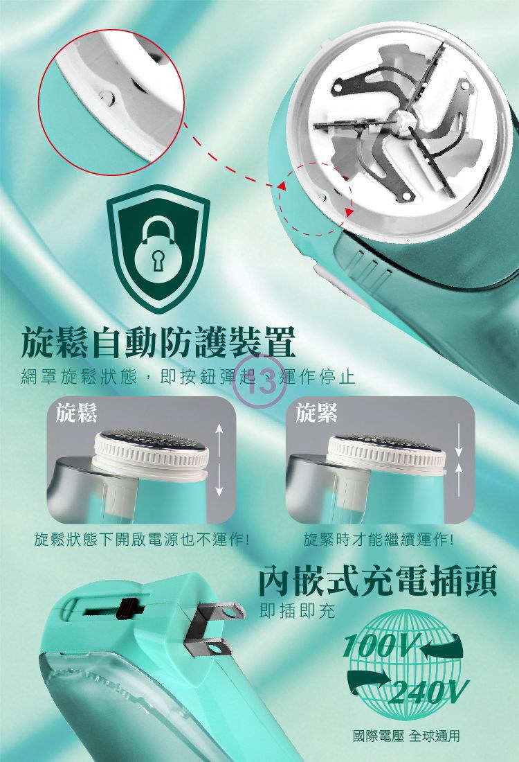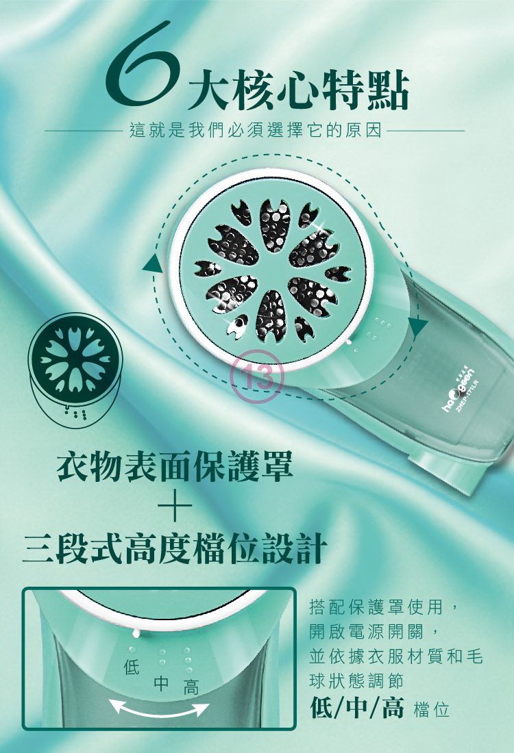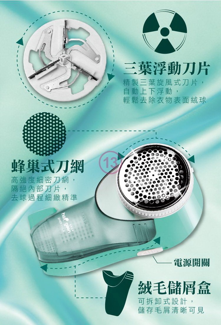 3.三葉浮動刀片,自動上下浮動,輕鬆去除毛球。