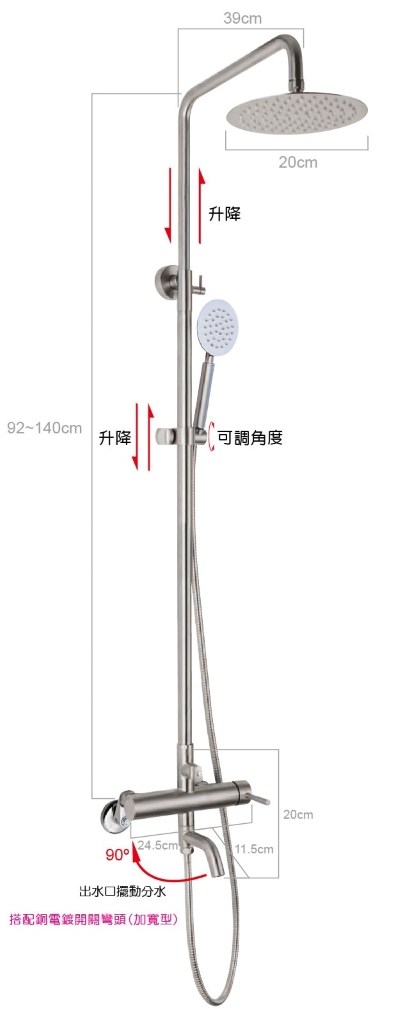 典雅黑淋浴柱花灑-台灣製