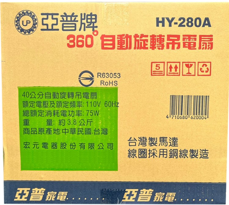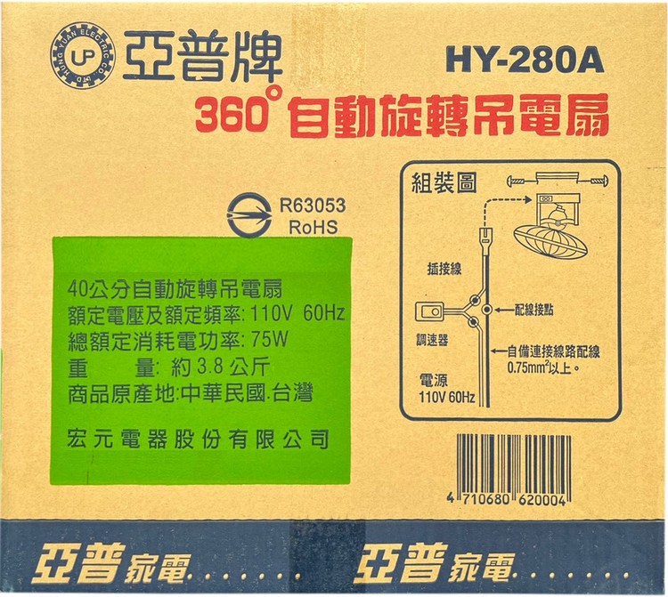 亞普16吋 360度旋轉吊扇 HY-280A