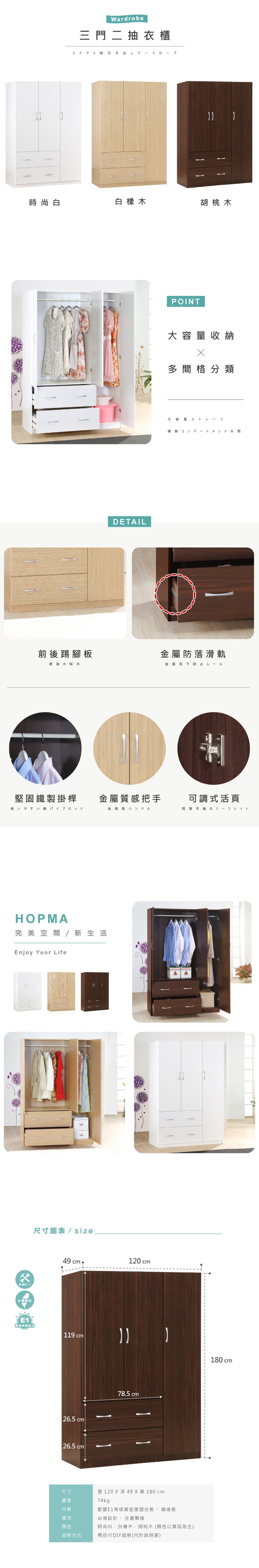 《HOPMA》美背三門衣櫃 台灣製造 衣櫥 收納櫃 衣物收納櫃-時尚白