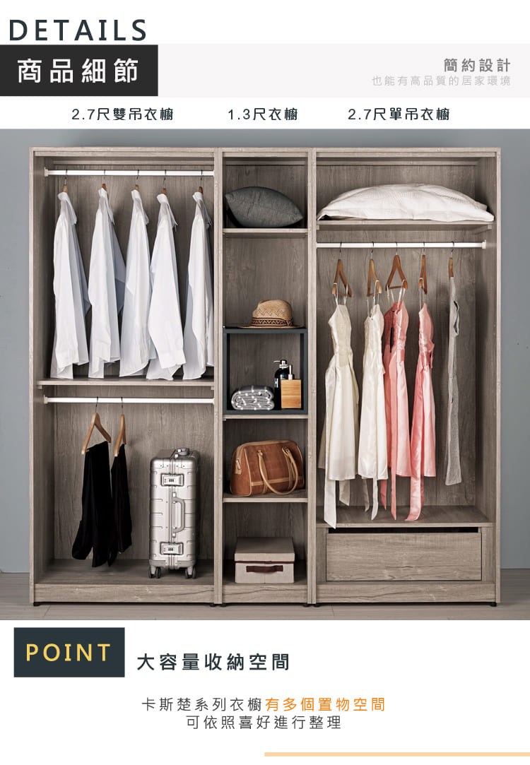 【Hampton 漢汀堡】卡斯楚2.7尺雙吊衣櫥