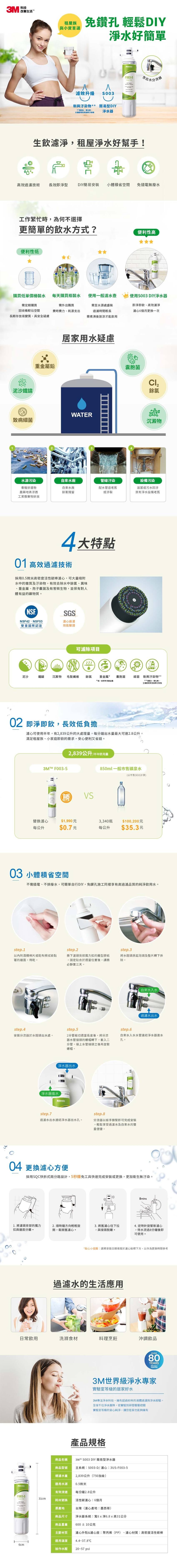 【3M】3US-S003-5即淨便捷淨水系統【S003-D|DIY套裝組|一機一心組】【3M授權經銷】