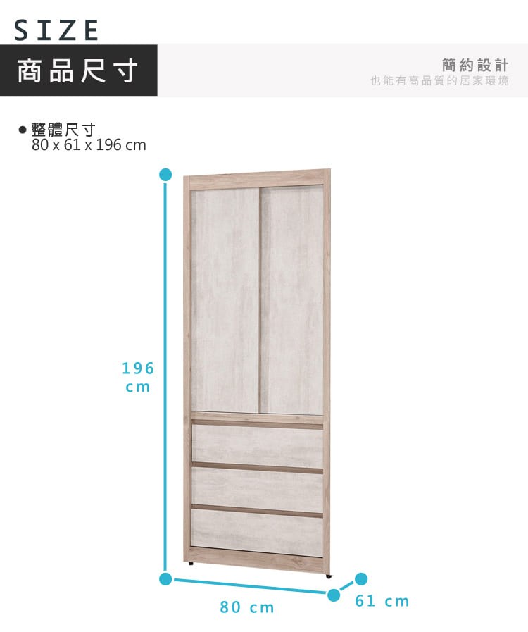 直人木業-ELENA當代日系80公分滑門高被櫥三抽衣櫃