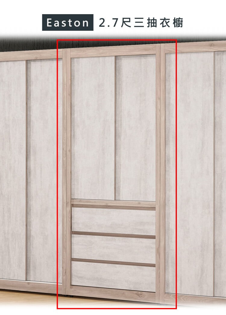 【Hampton 漢汀堡】伊斯頓2.7尺三抽衣櫥