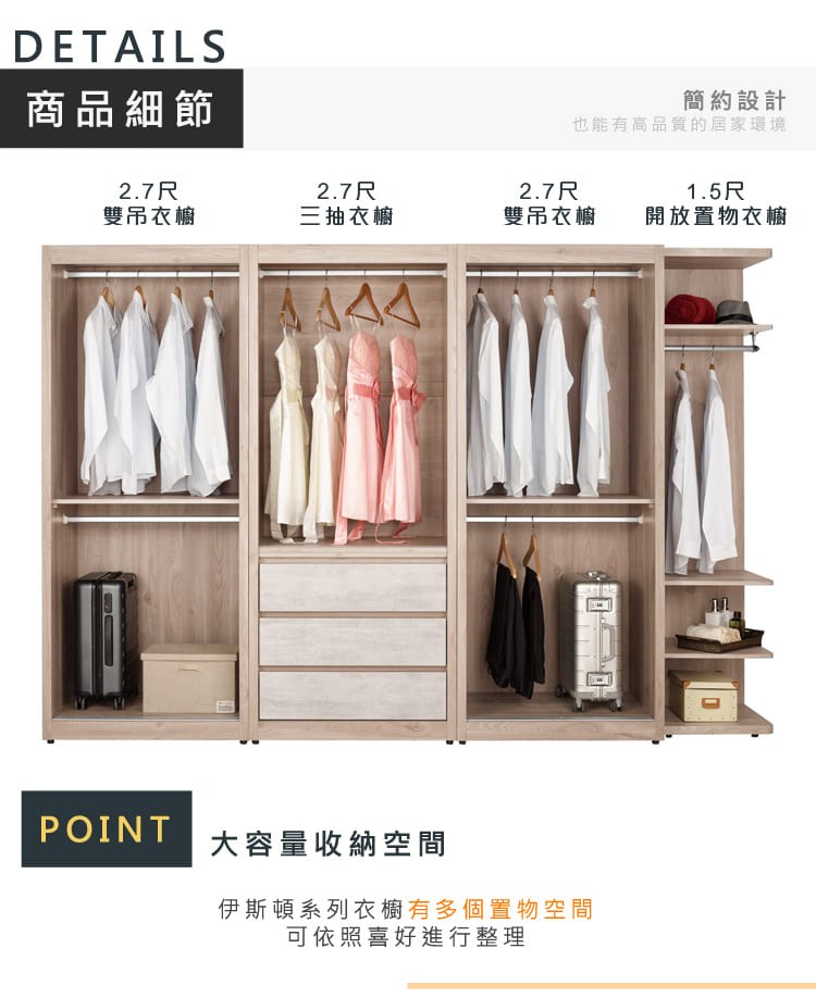 Boden-奧尼2.7尺開放式雙吊桿實木衣櫃(兩色可選)