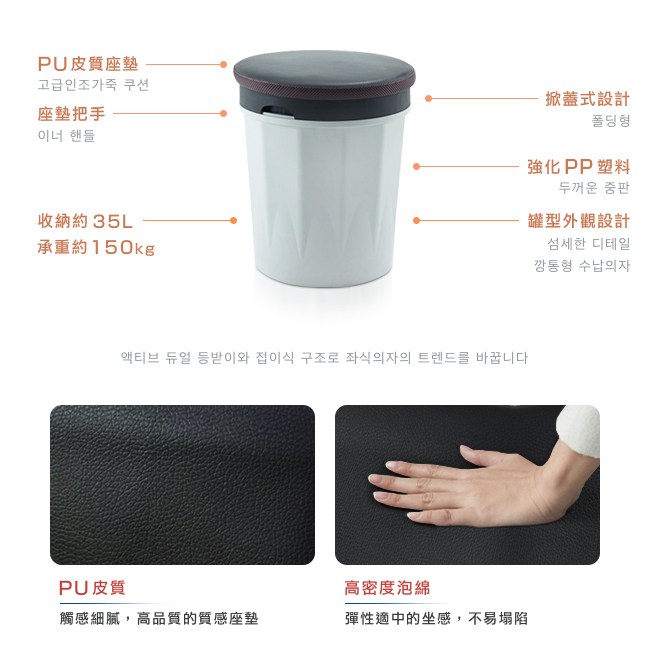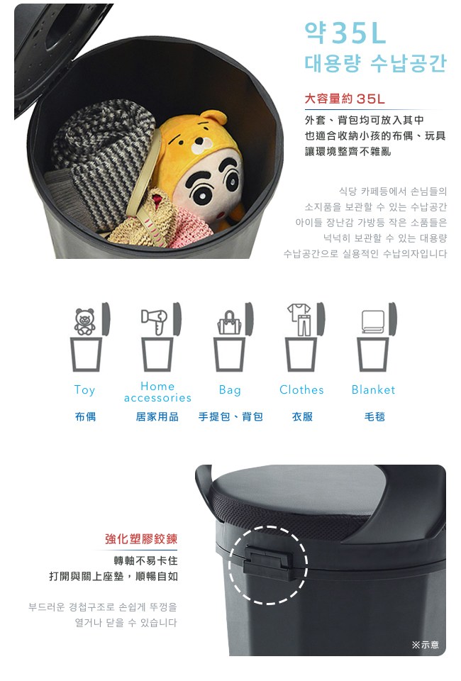 我們希望設計出一張多功能的座椅,除了好坐及好擺放之外,打開座墊變成收納桶,容量約 35L,可以放置布偶、玩具、手提包、背包、衣物與毛毯等等,節省居家、商業的空間,還能廣泛的使用它。在韓國大受好評、實用至上的【DonQuiXoTe】韓國原裝Tube收納椅凳-4色可選,推薦您值得擁有。