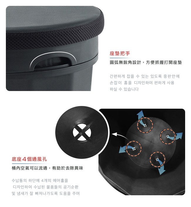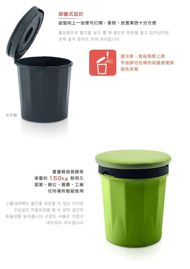 ◆ 掀蓋收納椅設計,簡單實用