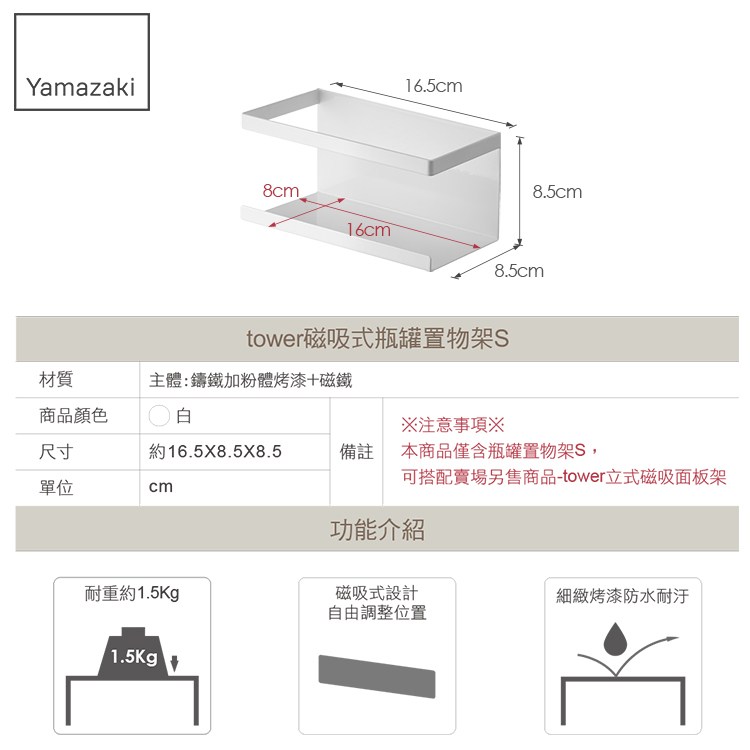 本商品僅含瓶罐置物架S,可搭配賣場另售商品-"" tower立式磁吸面板架 ""