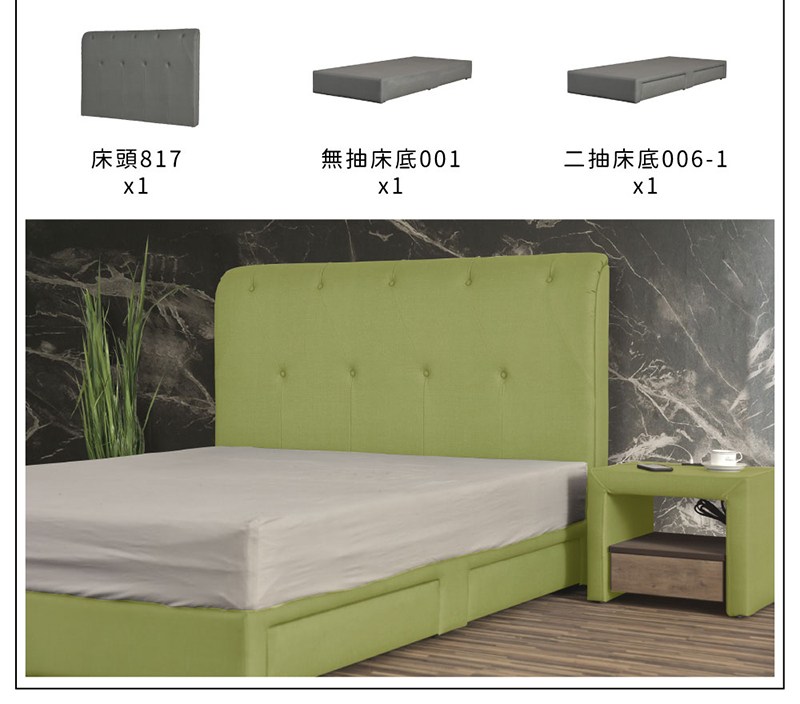 【UHO】戴蒙-菱格貓抓皮 6尺雙人加大二件組(床頭片+2抽磁吸床底)03綠