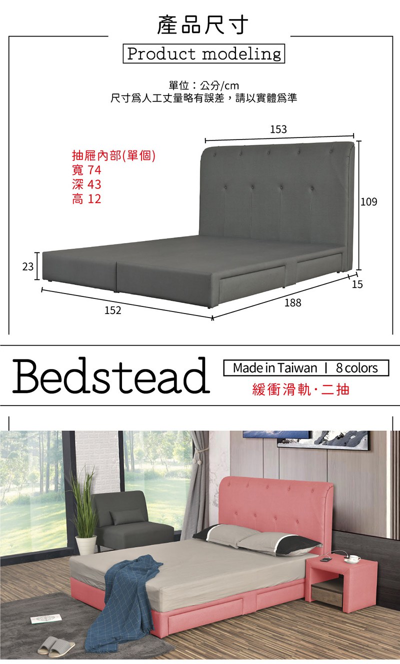 AS雅司-松樂5尺四抽收納床底-152x188x26cm--只有床底