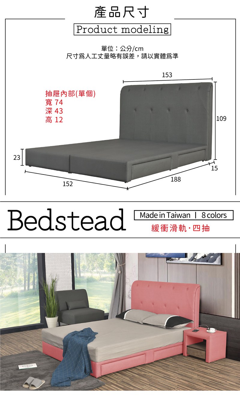 AS雅司-松樂5尺四抽收納床底-152x188x26cm--只有床底