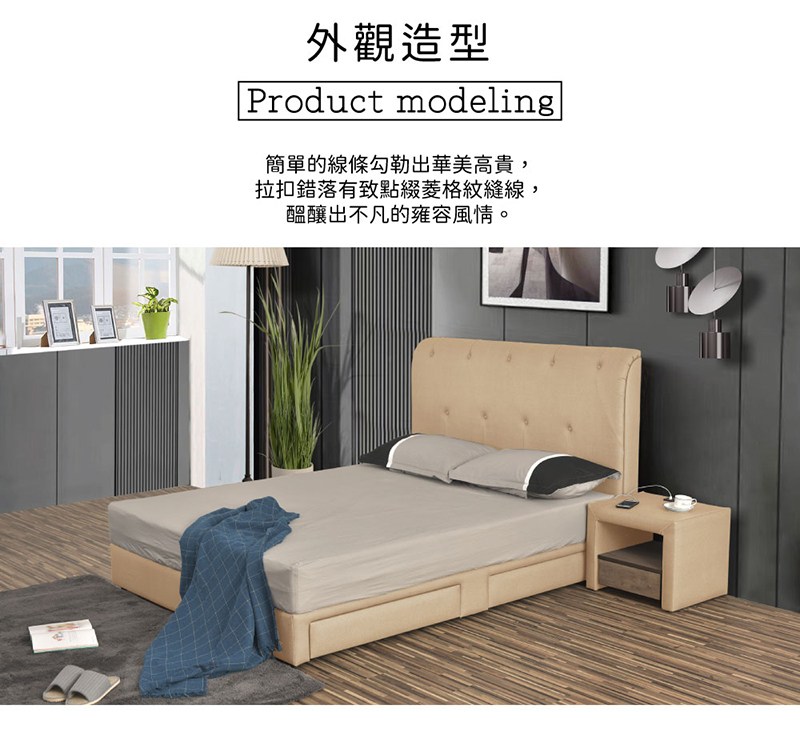 【UHO】戴蒙-菱格拉扣貓抓皮 5尺雙人二件組(床頭片+2抽床底)05
