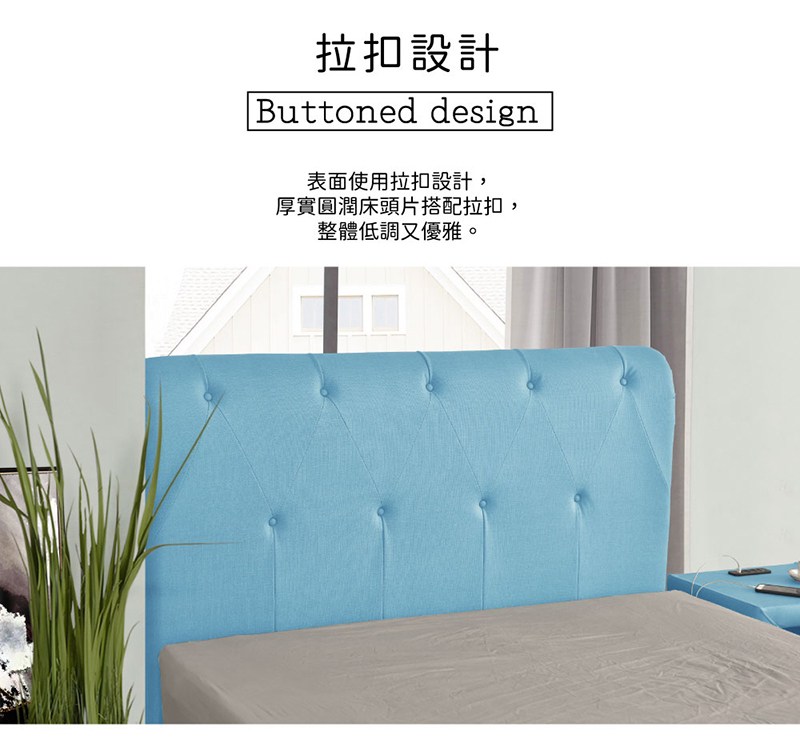 IHouse-貝殼波堤 雙人5尺(貓抓皮床頭片+高腳床架)-房間兩件組/床組迷濛藍#627-19