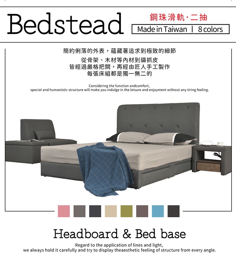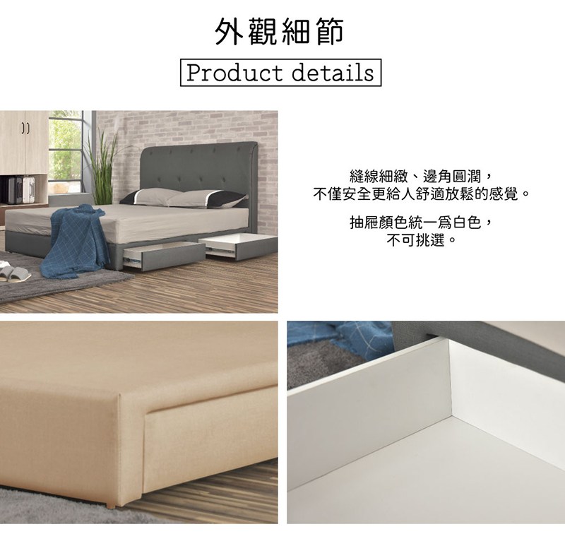【UHO】戴蒙-菱格貓抓皮 6尺雙人加大二件組(床頭片+2抽磁吸床底)05