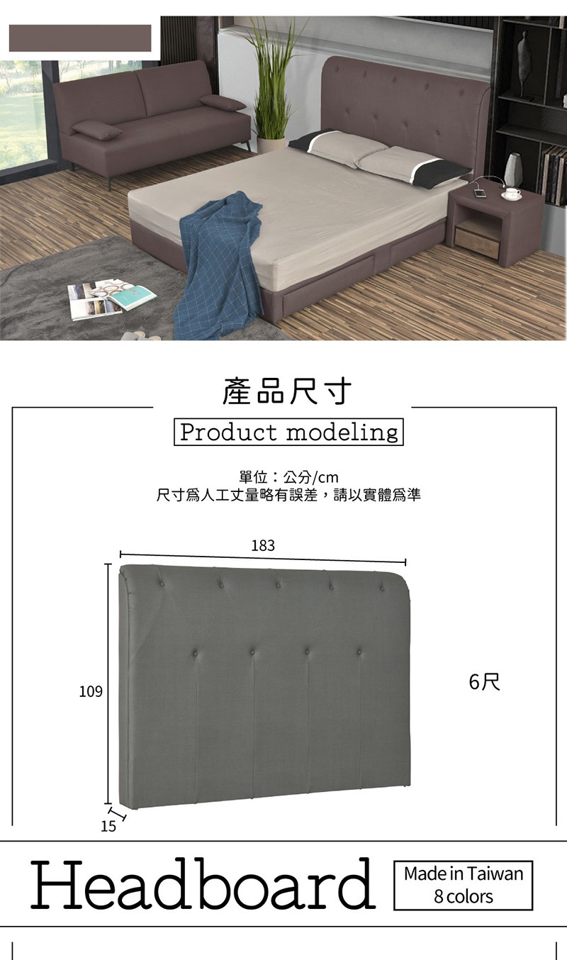 【UHO】李奧納德-6尺雙人加大貓抓皮床頭片83灰