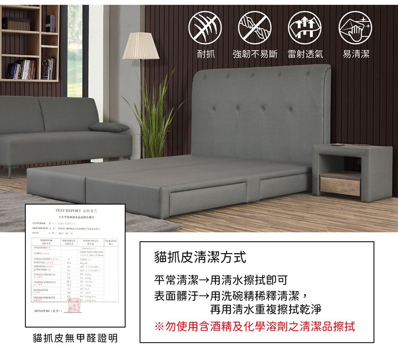 【IHouse】御匠手作系列-單大3.5尺 收納貓抓皮2抽屜床底 /木心板床架床座 (台灣製)