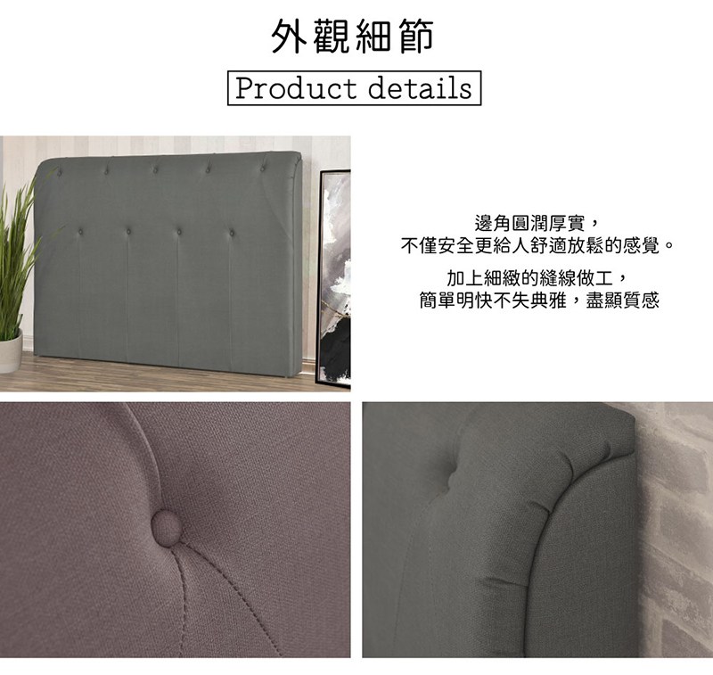 IHouse-修傑凱 簡約 貓抓皮床頭片 雙大6尺鐵灰色#707-01