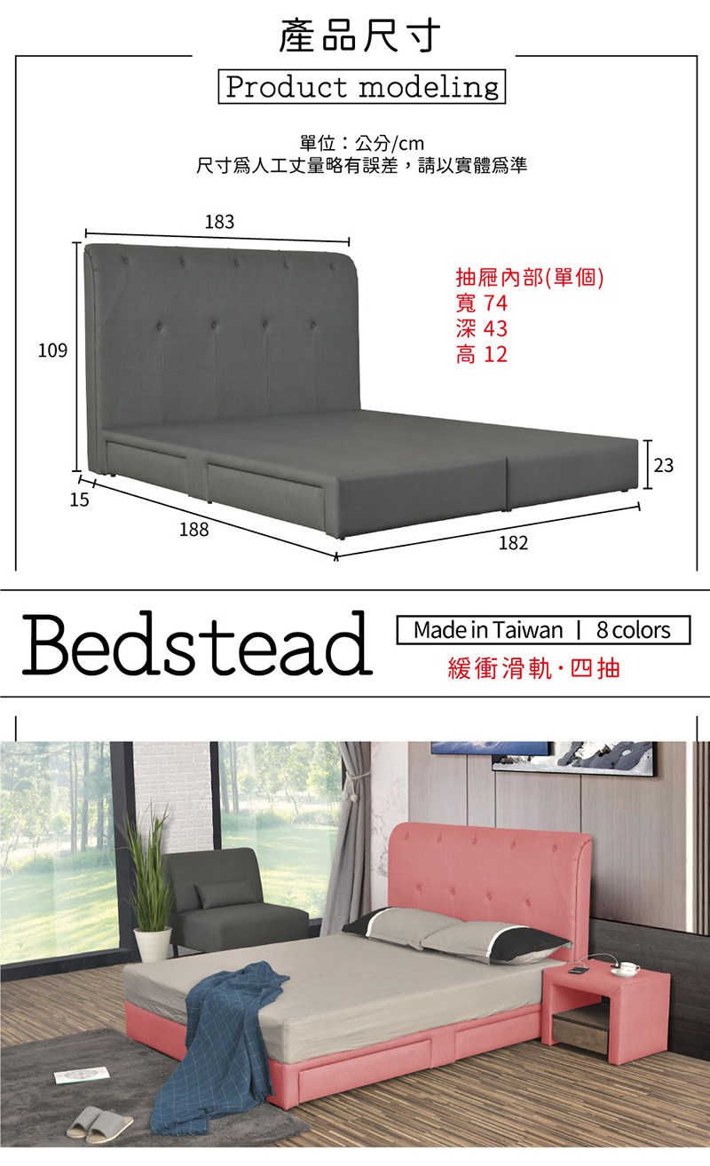 AS雅司-松樂5尺四抽收納床底-152x188x26cm--只有床底