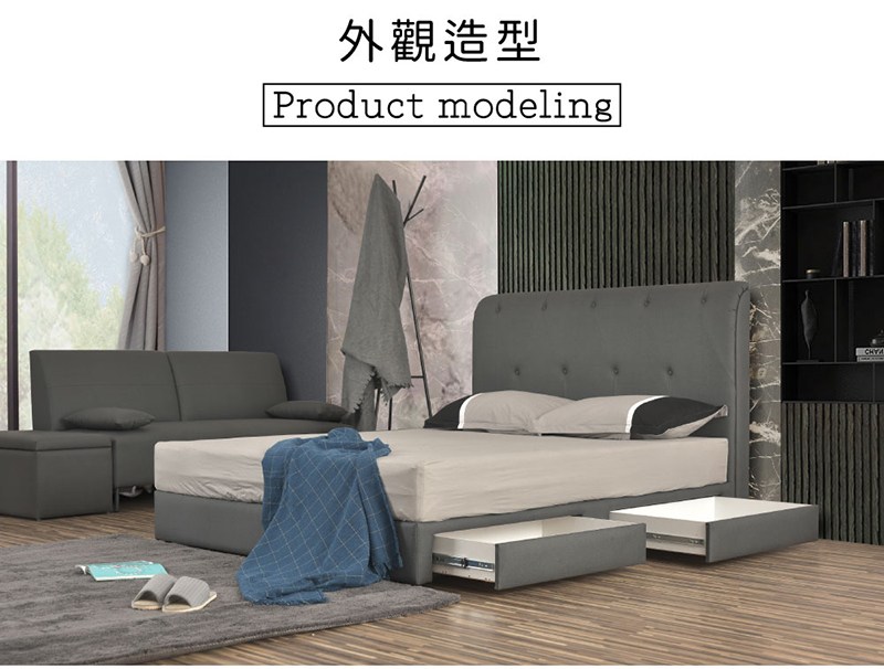 IHouse-貝殼波堤 雙人5尺(貓抓皮床頭片+收納抽屜底)-房間兩件組/床組煙霧灰#627-22
