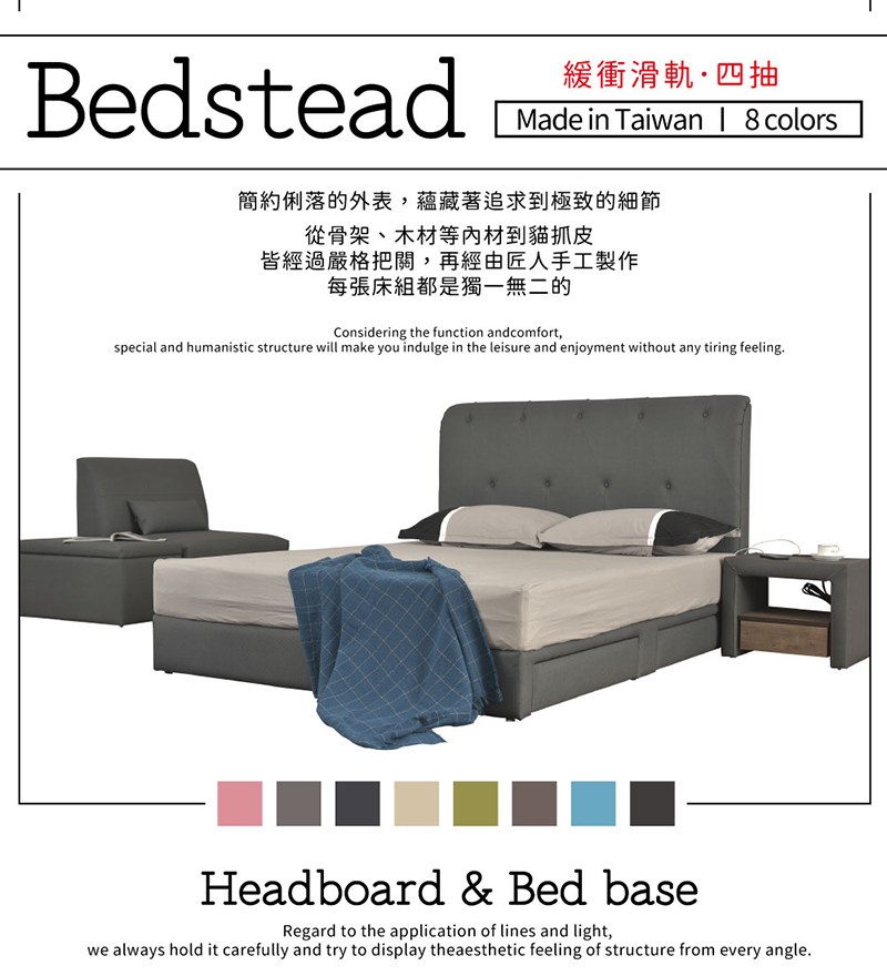 【UHO】戴蒙-菱格貓抓皮 6尺雙人加大二件組(床頭片+2抽磁吸床底)05