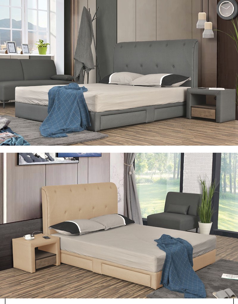 IHouse-貝殼波堤 雙人5尺(貓抓皮床頭片+收納抽屜底)-房間兩件組/床組煙霧灰#627-22