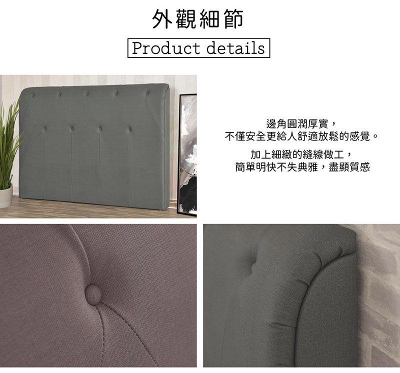 IHouse-修傑凱 簡約 貓抓皮床頭片 雙人5尺鐵灰色#707-01