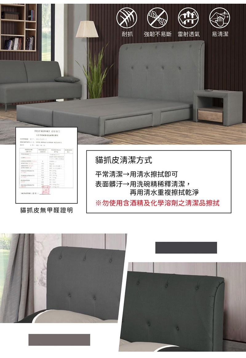 【UHO】波娜-貓抓皮革床組(床頭片+床底)-6尺雙人加大05