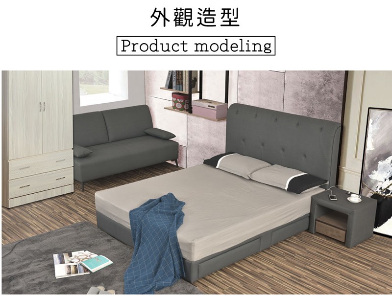 【UHO】戴蒙-菱格貓抓皮 6尺雙人加大二件組(床頭片+2抽磁吸床底)05