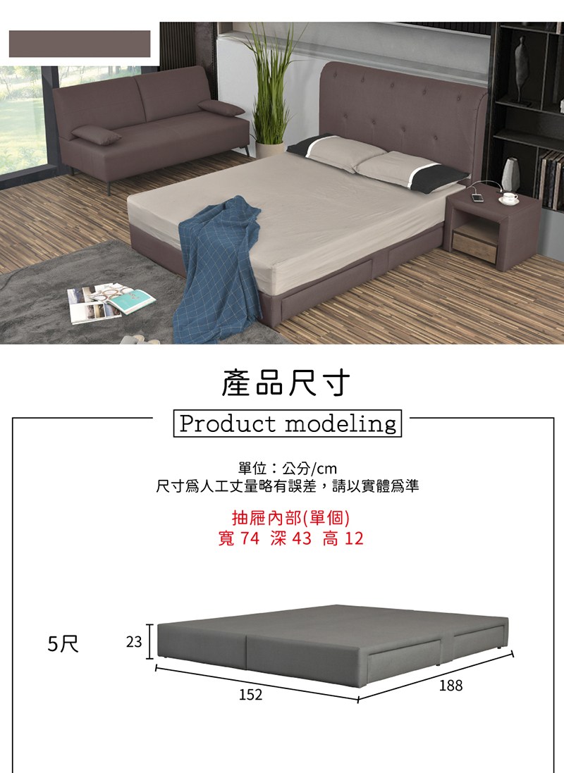 AS雅司-松樂5尺四抽收納床底-152x188x26cm--只有床底