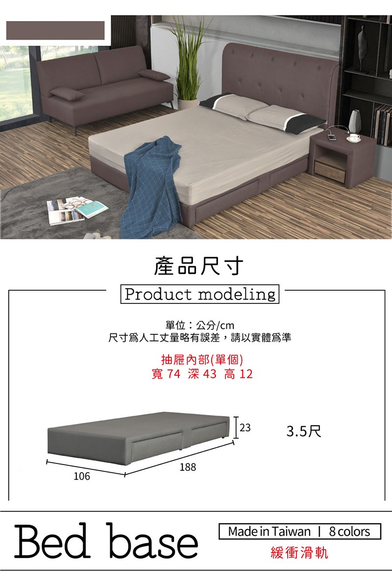 【UHO】零零陸貓抓皮3. 5尺單人2抽磁吸床底02米