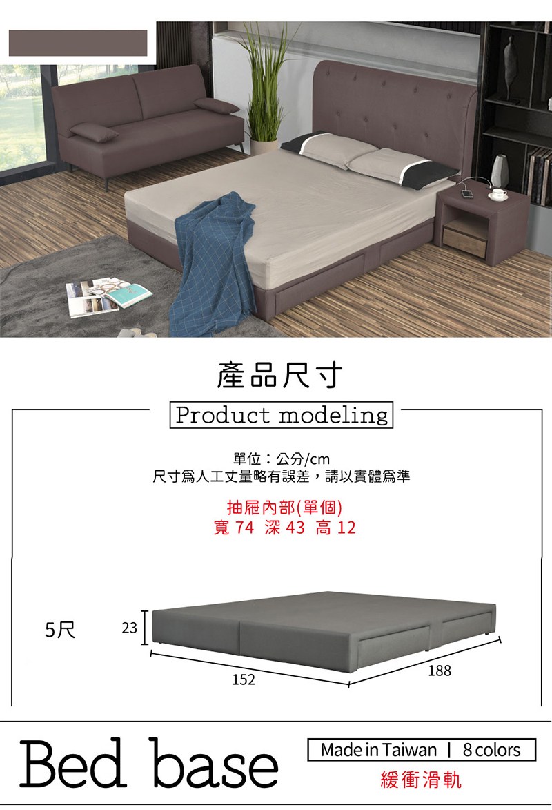 AS雅司-松樂5尺四抽收納床底-152x188x26cm--只有床底
