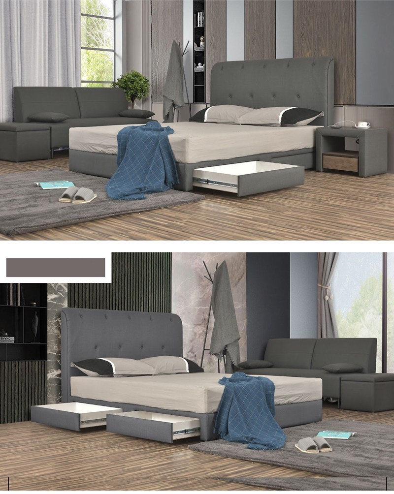 【UHO】零零陸貓抓皮3. 5尺單人2抽床底17灰